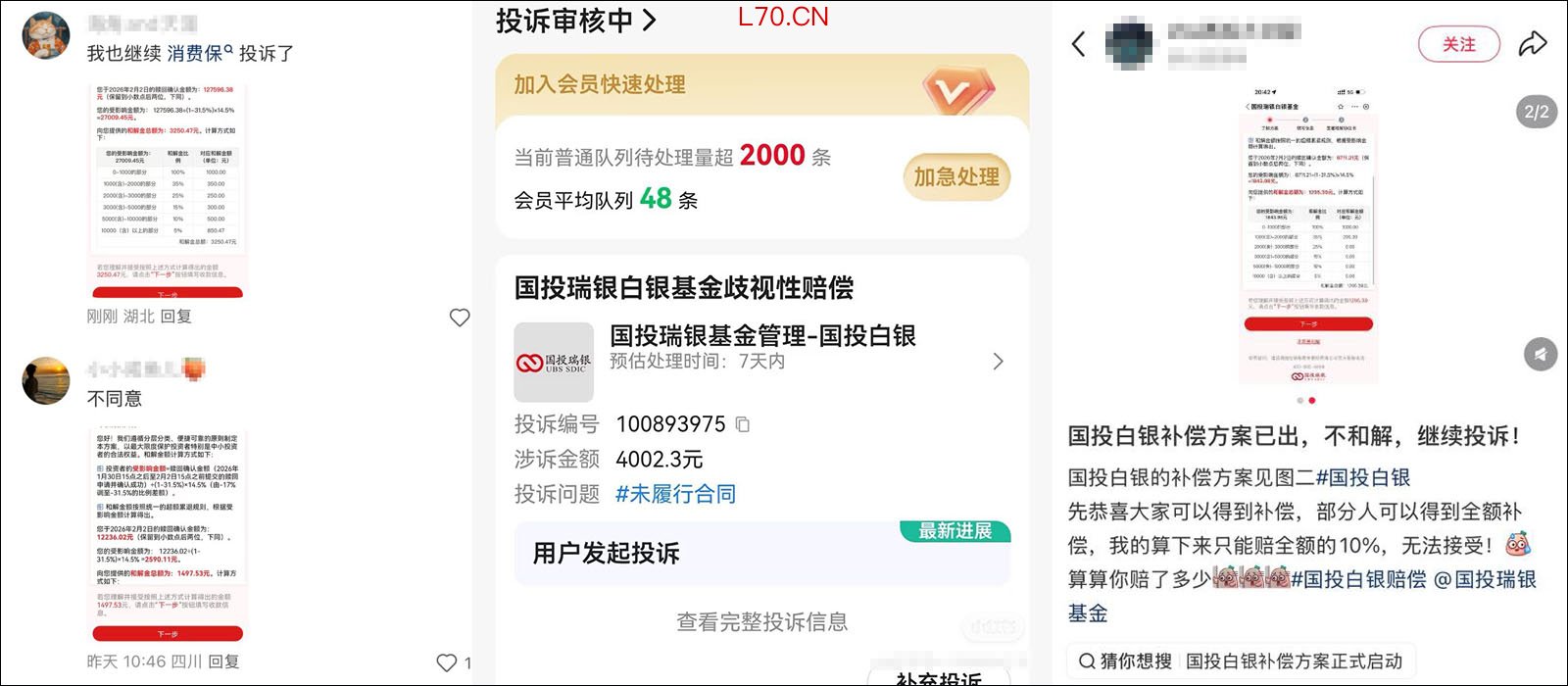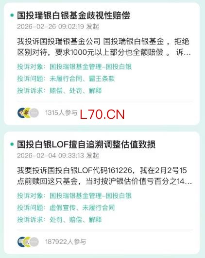 社交平台上,多位国投瑞银白银基金的投资者对补偿方案不满,表示不和解,甚至发起了投诉