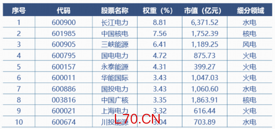 中证全指电力公用事业指数前十大权重股