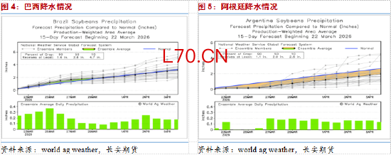 布宜诺斯艾利斯谷物交易所BAGE截至3月11日当周的报告来看,阿根廷北部和西部农业区降雨增加,改善了阿根廷大豆作物评级。但是布宜诺斯艾利斯省中部和南部地区仍面临严重水分不足。目前76%的大豆作物评级正常至良好,高于一周前的74,去年同期75%;72%的种植区水分条件适宜到最佳,高于一周前的67%,去年同期81%。