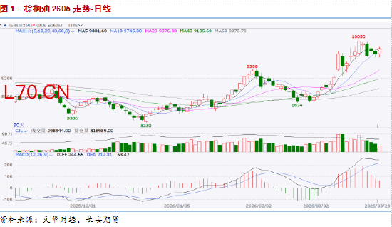从油脂板块自身的基本面来看,多空博弈明显。上周二MPOB公布了2月月度供需报告,其中产量环比下降18.5%至128.5万吨,库存环比小幅下滑3.9%至270.4万吨。与市场此前预估相比,产量降幅略大于市场预期,出口不及市场预估,库存去化幅度不够,整体影响中性略偏空。同时近日中美谈判未取得明显进展,市场对后续美豆出口预期有所回落,上周一美豆大跌,对油脂板块形成了一定拖累。3月是美国生物柴油掺混义务量(RVO)终案落地的关键窗口期,但目前消息政策落地时间或有延迟,生柴需求端的支撑暂时转弱。不过3月上旬最新的船运出口数据改善较为明显,为市场提供了一定支撑,而且马棕目前所处的减产周期还未度过,产地供应仍处在小幅缩减格局当中。因此整体基本面暂时难以给出较为明确的方向性驱动。但油脂依然面临较高的波动风险,主要在于目前全球市场的核心驱动力依然是中东地缘政治危机,伊朗与美国的军事冲突持续升级,霍尔木兹海峡的通行安全问题成为牵动原油价格的核心力量。近期美伊双方关于冲突的表态依然相对激进,短期内难以看到有效的缓和迹象。原油价格上涨直接提振棕榈油作为生物燃料的吸引力,同时,原油价格上涨推升国际化肥价格,种植成本上行预期也为豆系原料价格提供支撑。阶段性来看,地缘冲突带来的系统性风险对农产品板块的外溢作用成为当下支撑油脂价格的核心因素,若冲突不缓和或持续升级,油脂板块也将进一步跟随。但我们需要考虑到目前的价格已经计入较高升水的情况下,一方面如果基本面的支撑因素转弱,如斋月备货结束出口回落等则会引发一定获利了结情绪增加;另一方面战争本身不确定性大也需要防范一旦出现缓和迹象,前期计入的风险溢价将面临大幅回吐。总的来说,油脂板块暂以高位偏强震荡看待,但风险极速累积之下,前多需做好利润保护,操作上可考虑逐步止盈,关注地缘与原油的变化。