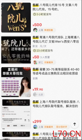 “11点放号,七八点就有黄牛去排队”一位消费者表示,如今刚开业红极一时,但明星效应迟早会减退,不必要跟风。目前在闲鱼上,已经有多个账号经营八号院儿代排队取号业务,实际价格从200元到500元不等。