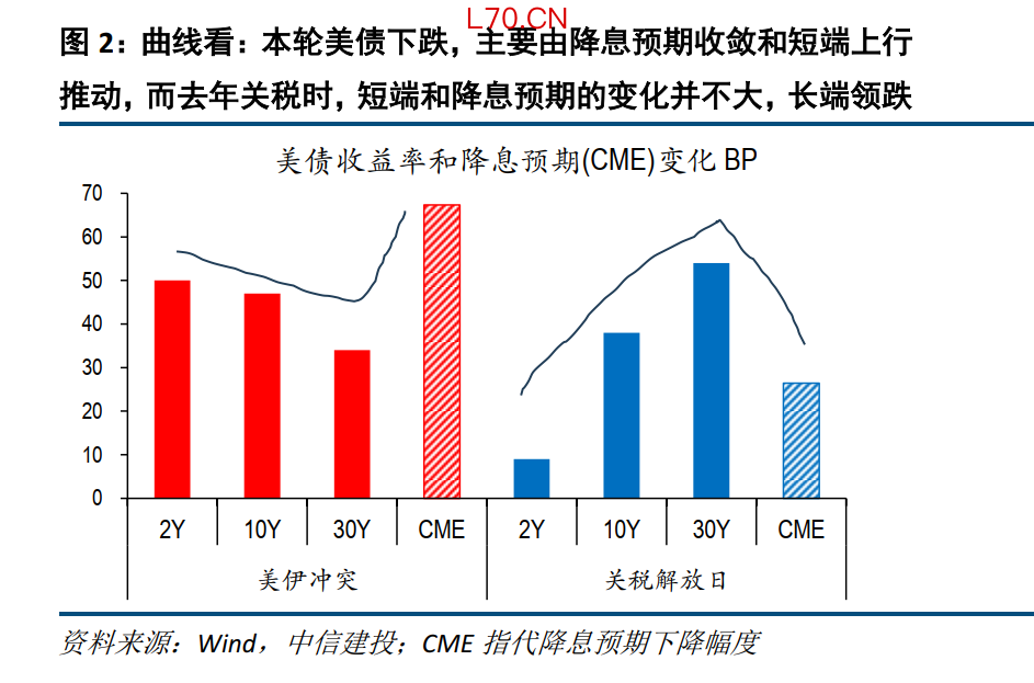 (1)曲线变化:去年关税,降息预期收敛有限,短端美债未大跌,中长期限美债是抛售重灾区;而本轮美债下跌,有着明显的加息担忧和短端催化的特征,基本面扰动为主。