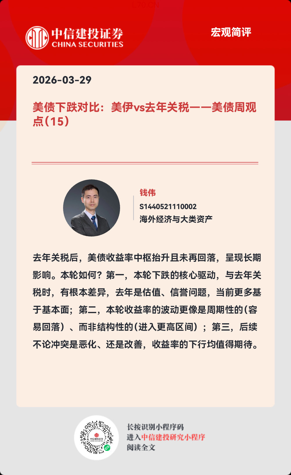 证券研究报告名称:《美债下跌对比:美伊vs去年关税——美债周观点(15)》