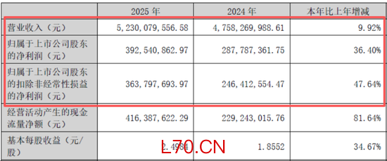 就在这个背景下,小熊电器(002959.SZ)实现业绩双增:2025年营收52.30亿元,同比增长9.92%;归母净利润3.93亿元,同比增长36.40%。