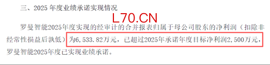 这背后还有2024年收购罗曼智能带来的协同效应。2025年,罗曼实现归母净利润(以扣除非经常性损益后孰低)6,533.82万元,以261%的完成率超额实现业绩承诺。