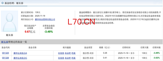 从主动权益与固收+领域看, 2025年11月,鹏华弘和混合增聘姬长春为基金经理。姬长春此前并无公募基金经理经验,2022年10月加入鹏华基金后历任基金经理助理和资深研究员。目前,其在管基金有两只,均任职139天,任职回报分别为-3.49%和-3.52%。